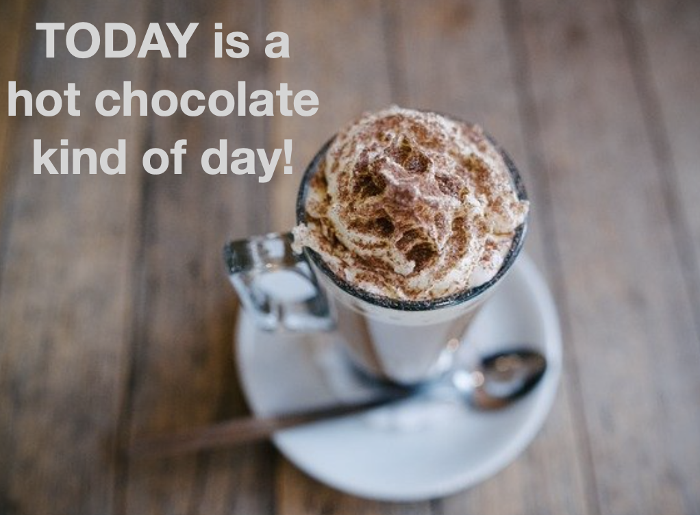 We all know a great topping for hot chocolate is whipped cream! There are several ways to make whipped cream…using REAL cream is our favorite! See our coaching tip for more ideas!