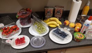 This is to celebrate my Birthday week!! Normally there is donuts. So, my friends, don’t give in to the norm … stand up for eating healthy … you never know who is watching … and now today everyone is enjoying healthy, and no one is going to suffer from a sugar low!!! Got to love my Office Manager!!