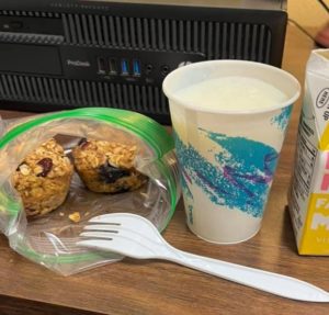 I work in a school lunchroom, and I bring these wonderful baked oatmeal cups for my snack every day. I love them with craisins, blueberries and diced apple – gotta have the apple. ![]()