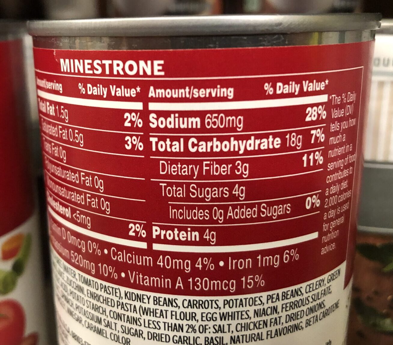 • Beware of MSG (Monosodium Glutamate)!  You have probably heard the term “msg free.”  This ingredient is added to enhance flavor but has also been thought to damage cells in the nervous system and have other health effects.  Sadly, this ingredient is still present in a lot of canned soups, including the Campbell’s Vegetable Minestrone mentioned above.