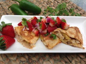 Pineapple Chicken Quesadillas with Strawberry Salsa