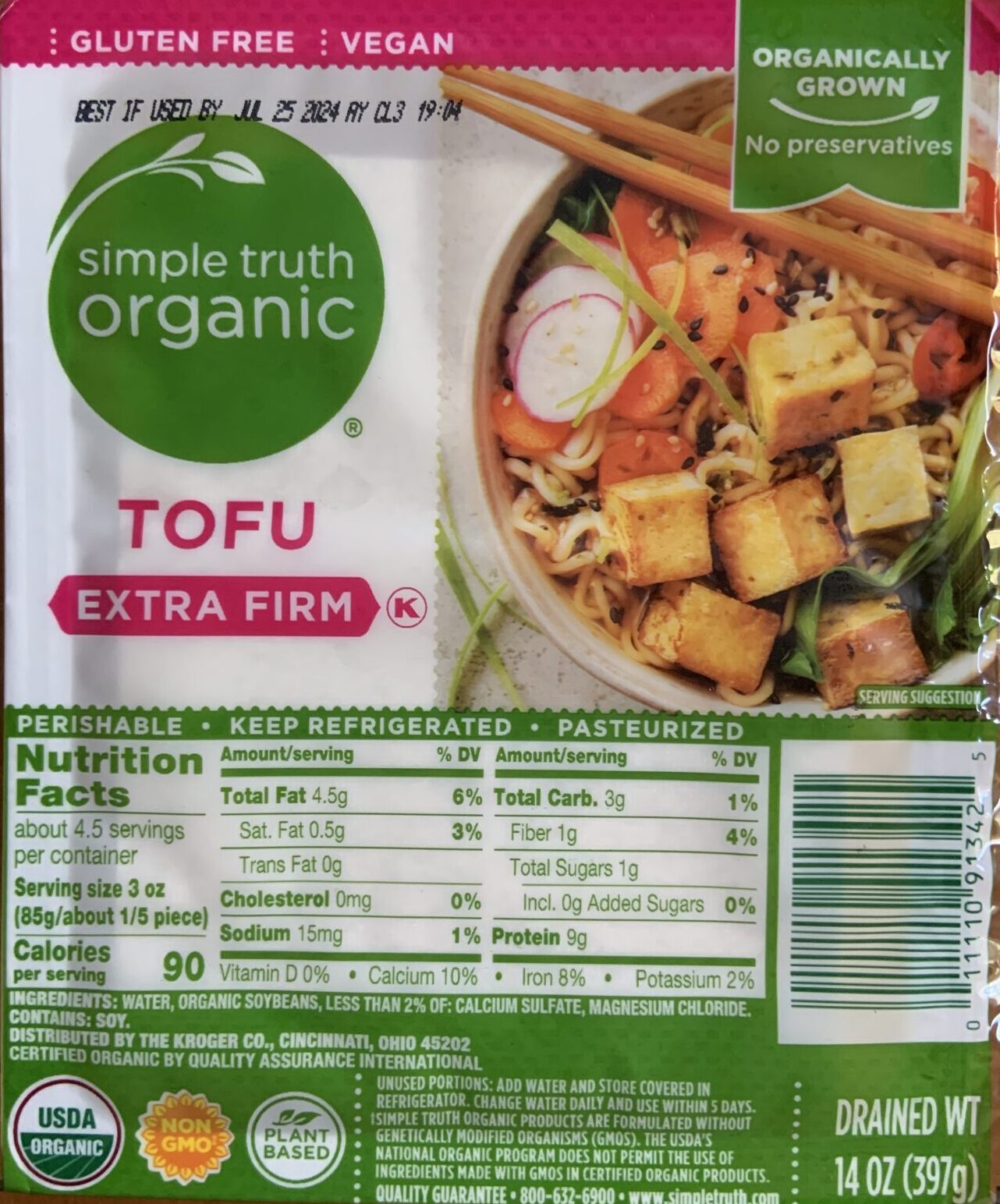 Tofu doesn’t have as much fiber as edamame or tempeh, but it is a great source of protein (9 grams for a 3 oz serving).