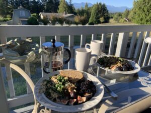 And it got even better at our Air B&B stay in Anacortes, WA! This was such a memorable experience; it may be in our top 3 best ever! Not only was this a breath-taking location, but we were greeted with fresh oat bread, homemade raspberry jam, fresh eggs from their chickens and a kitchen stocked with healthy snacks.