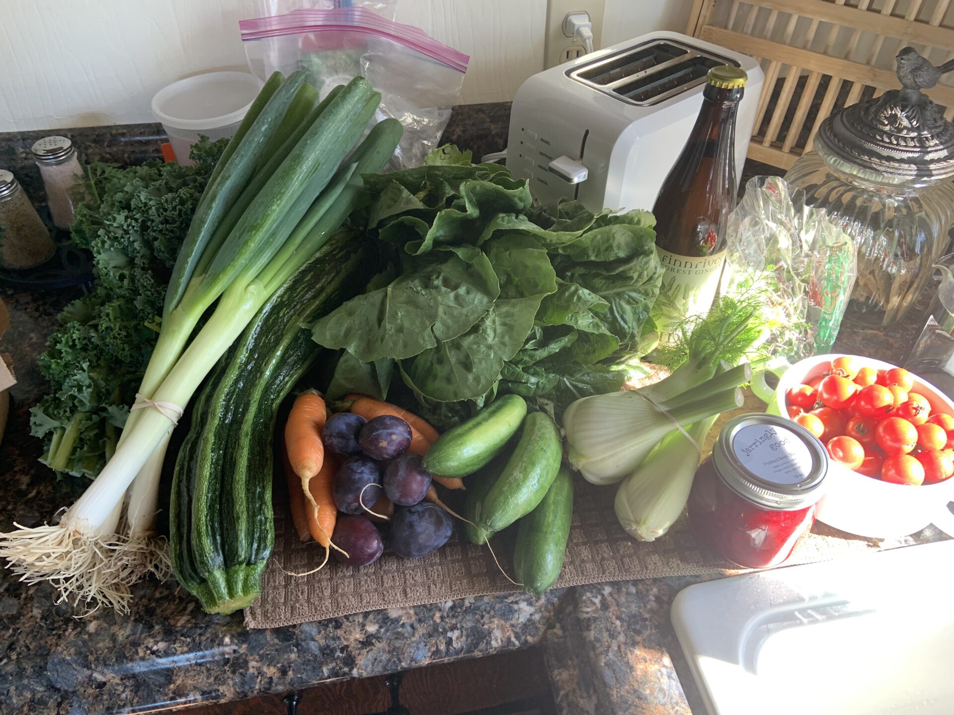 We found a local food co-op in Anacortes, where we bought some local veggies, including sweet potatoes, onions, cauliflower, and both shishito and Padron peppers (we were ridiculously excited to find shishito peppers again)! This was helpful because it was a few days before the next farmers’ market, where we found more fresh greens, microgreens, carrots, plums, cucumbers, zucchini, green onions, fennel, cherry tomatoes and more!