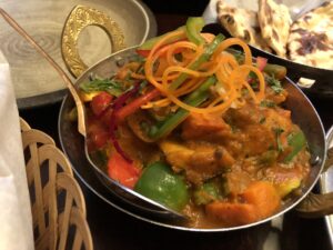 We split the Mangalorean Chicken Sukka (super-tender chicken in an flavor-popping onion and coconut curry) and the Kadai Vegetables (a variety of veggies with crushed tomatoes, onions and green peppers). We are still thinking about this meal!