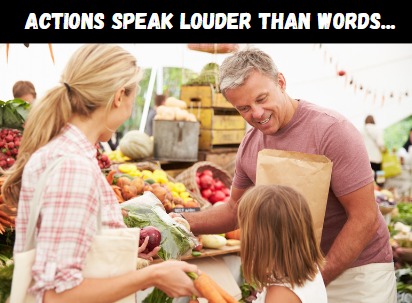 We just heard a story from a couple who took their kids to the farmers’ market once a month from the time they were age 5 until they graduated high school. Just once a month! The kids are now on their own and guess what? They routinely shop at the farmers’ market and have the confidence and desire to prepare meals at home. They even ask their parents to meet them at the market and they get together on Sundays to share the foods they prepared with the ingredients they picked up the day before. What a great legacy to leave!