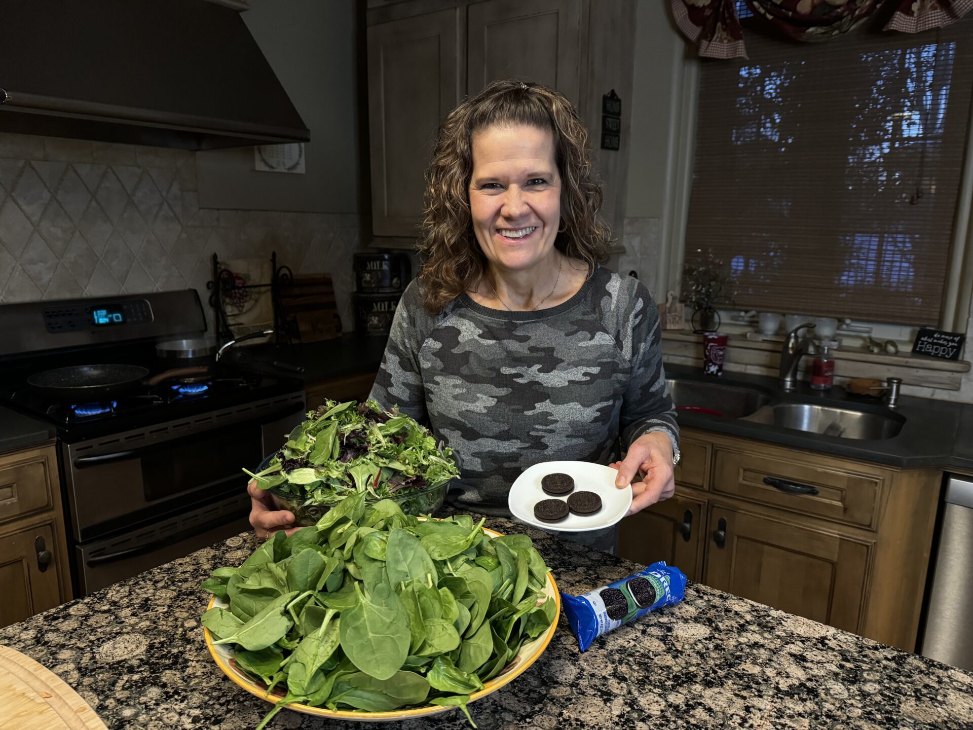 To match the calories of 3 Oreos, you would need to eat more than 16 cups of greens! This is because Oreos are calorie dense, with most of their calories coming from sugar and fat. In contrast, spinach and other dark leafy greens are nutrient dense, providing vitamins, minerals, and fiber without significant calories. This is why Dr. Joel Fuhrman says, “Greens are so nutrient-dense and low in calories that you can eat as much as you want without gaining weight.”