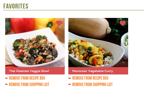 We have added a feature for you to “heart your favorites” in the Recipe Box. Once you click the heart, that recipe will be added to a Favorites section and will stay towards the top of your Recipe Box. You also have the ability to easily add a recipe from your Recipe Box to your Shopping List.