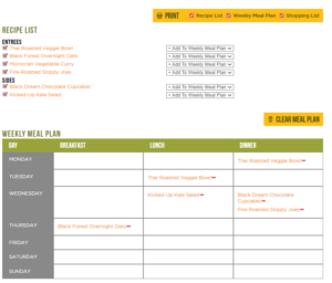 Your Shopping List still includes a list of recipes you have added that you plan to make. And now it also includes the ability to organize those recipes by meal and day into a weekly meal planner chart. You can add more than one recipe to any meal and can remove recipes from the chart or clear the meal plan with one click when you are ready to plan your next week. You can also choose whether to print the recipe list, meal planner, and shopping list…print any or all of them!