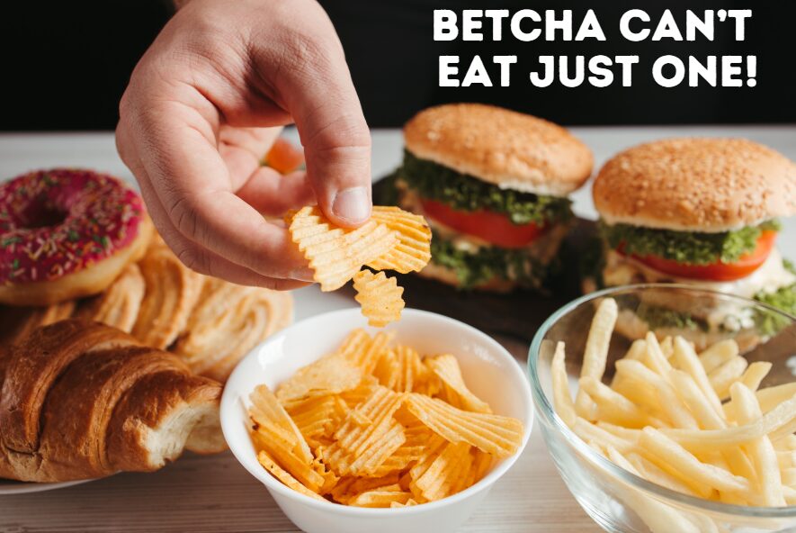 Potato chips – crunchy, salty, and often coated in artificial flavoring. The textbook example of an addictive food. They’re designed to be eaten in large quantities, with just the right combination of fat and salt to guarantee you will always lose the bet of “betcha can’t eat just one.”