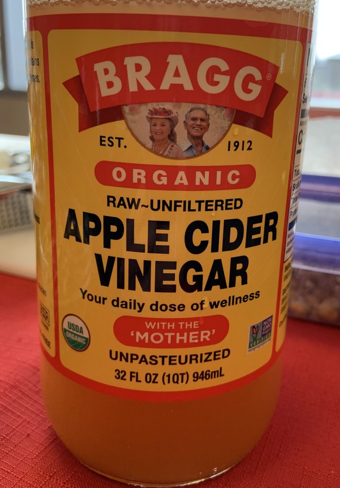 Apple cider vinegar with “the mother” is simply unrefined, unpasteurized, and unfiltered.  “The mother” includes strands of proteins, enzymes and beneficial bacteria that help aid digestion, promote gut health, burn belly fat and support the immune system.