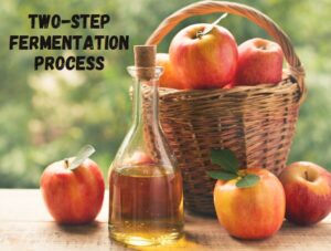 Vinegar is a combination of acetic acid and water and involves a 2-step fermentation process.  The yeast feeds on the sugar or starch from a plant food such as fruits, whole grains, potatoes or rice, and then the liquid ferments into alcohol.  The alcohol is than exposed to oxygen and the acetic acid bacteria ferments again over weeks or months, forming vinegar.