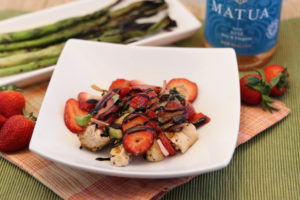 When you hear “balsamic reduction,” this is just a fancy way of describing balsamic vinegar that is simmered into a thick sauce.  Simmering the balsamic enhances the flavor and creates a syrup-like consistency that can be used to drizzle on a variety of fruits, vegetables and meats – like the Strawberry Basil Chicken.  Store it in a sealed container in the refrigerator.  If it is too thick when removed from the fridge, just place the container in warm water to soften it.  If you don’t want to make your own, a good aged balsamic vinegar is a great substitute.  A couple of options we really like include: