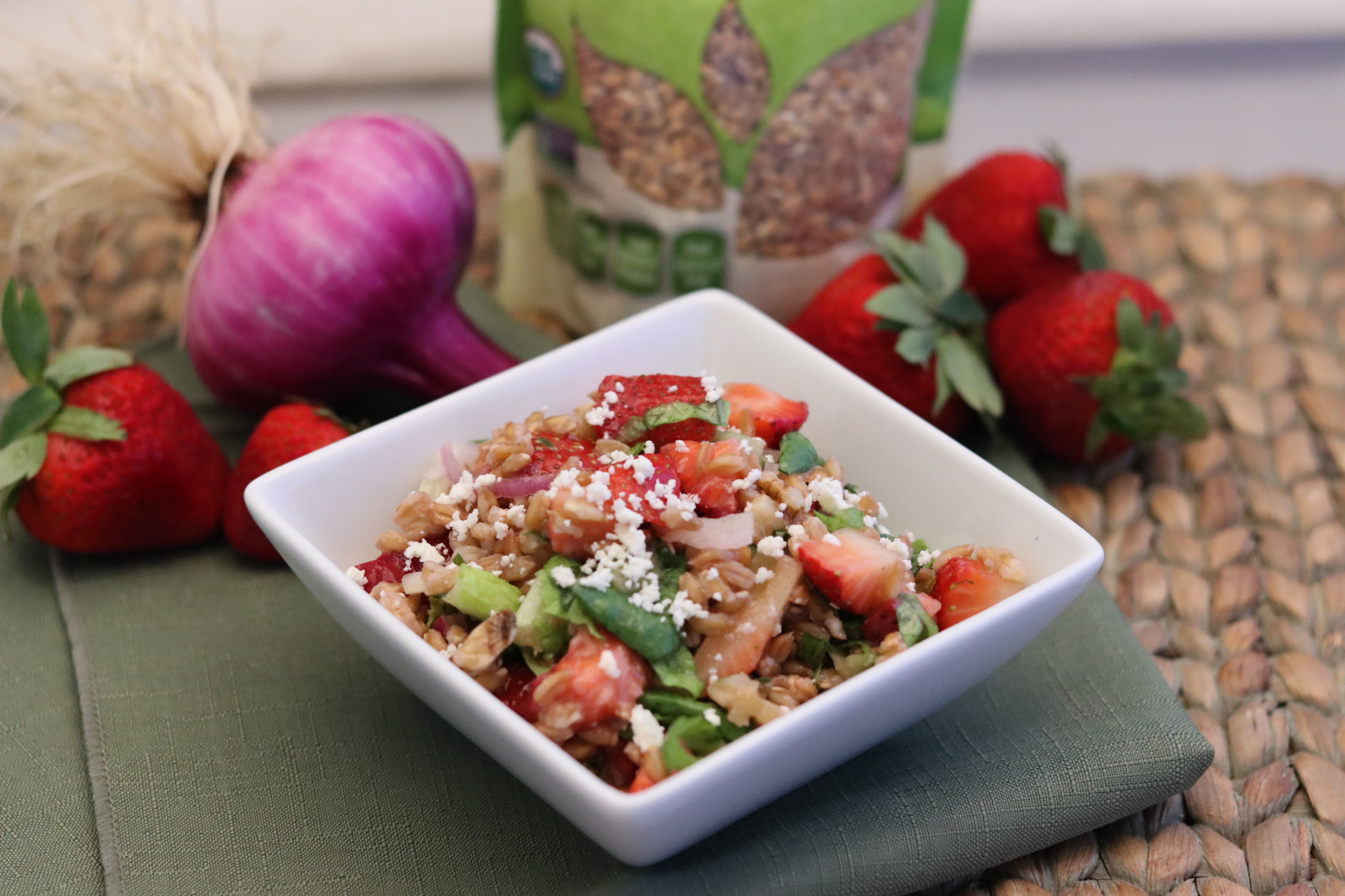 White balsamic vinegar:  similar to regular balsamic, but it is cooked at a lower temperature and aged in stainless steel or light wood barrels to give it a lighter color.  It tends to be a little milder than regular balsamic and is fantastic in dishes where you want the colors to stay bright and vibrant – like the Mixed Fruit Salad or the Strawberry Basil Farro Salad.