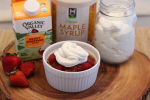 Ingredients: 1 cup heavy whipping cream, 2 to 3 Tbsp pure maple syrup.