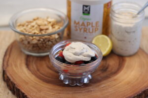 Ingredients: 4 Tbsp heavy whipping cream, 1/2 cup plain Greek yogurt, 2 Tbsp pure maple syrup, 1/2 tsp vanilla
