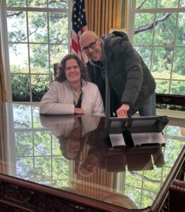 The morning of our meeting as we were walking to the White House, we suddenly heard sirens and saw several dark-tinted black vehicles headed our way. We don’t know for sure if it was the President, but we both asked, “what are the odds we will catch a glimpse of the President today?”