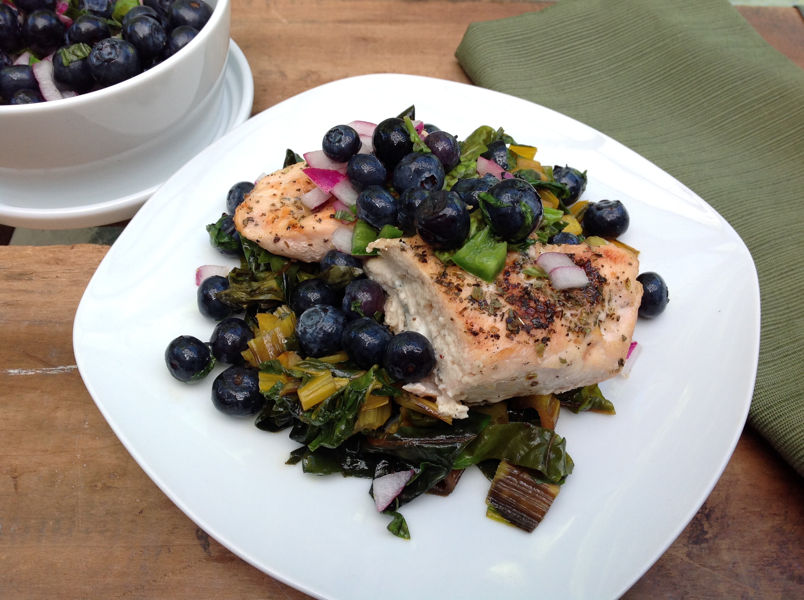 Goat Cheese Chicken with Blueberry Salsa – chicken stuffed with goat cheese and seasonings. And then topped with blueberry salsa – amazing flavor!