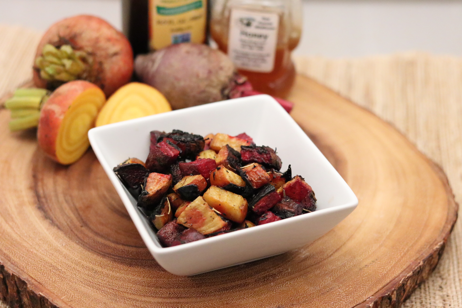 Roasting is the magic!  Like most roasted vegetables, beets will caramelize and tenderize when you roast them in the oven.  All you need is a little olive oil, salt and pepper.  Roast them at 400 degrees for 25-30 minutes if chopped into 1/2-inch (bite size) pieces, or for 40-45 minutes if leaving them whole.  If you are worried about staining, you can line your baking sheet with foil or parchment paper or wrap the beets in a foil packet.  If you THINK you don’t like beets, roast them and enjoy them in the Montana Inspired Beet Salad or the Roasted Beet and Mixed Berry Salad.  These are both amazing!