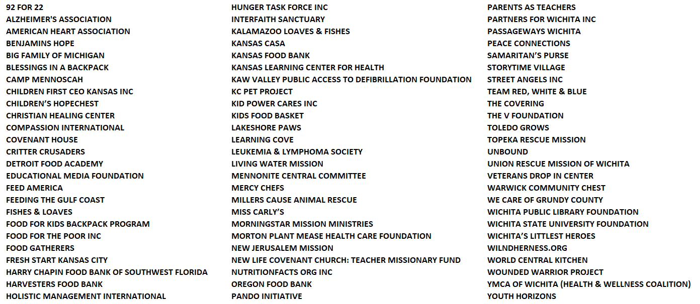 This is our 8th year doing this and, thanks to you, we will have supported over 100 organizations with more than $20,000 in total donations after this year’s contributions! Your recommendations have resulted in donations to organizations such as: