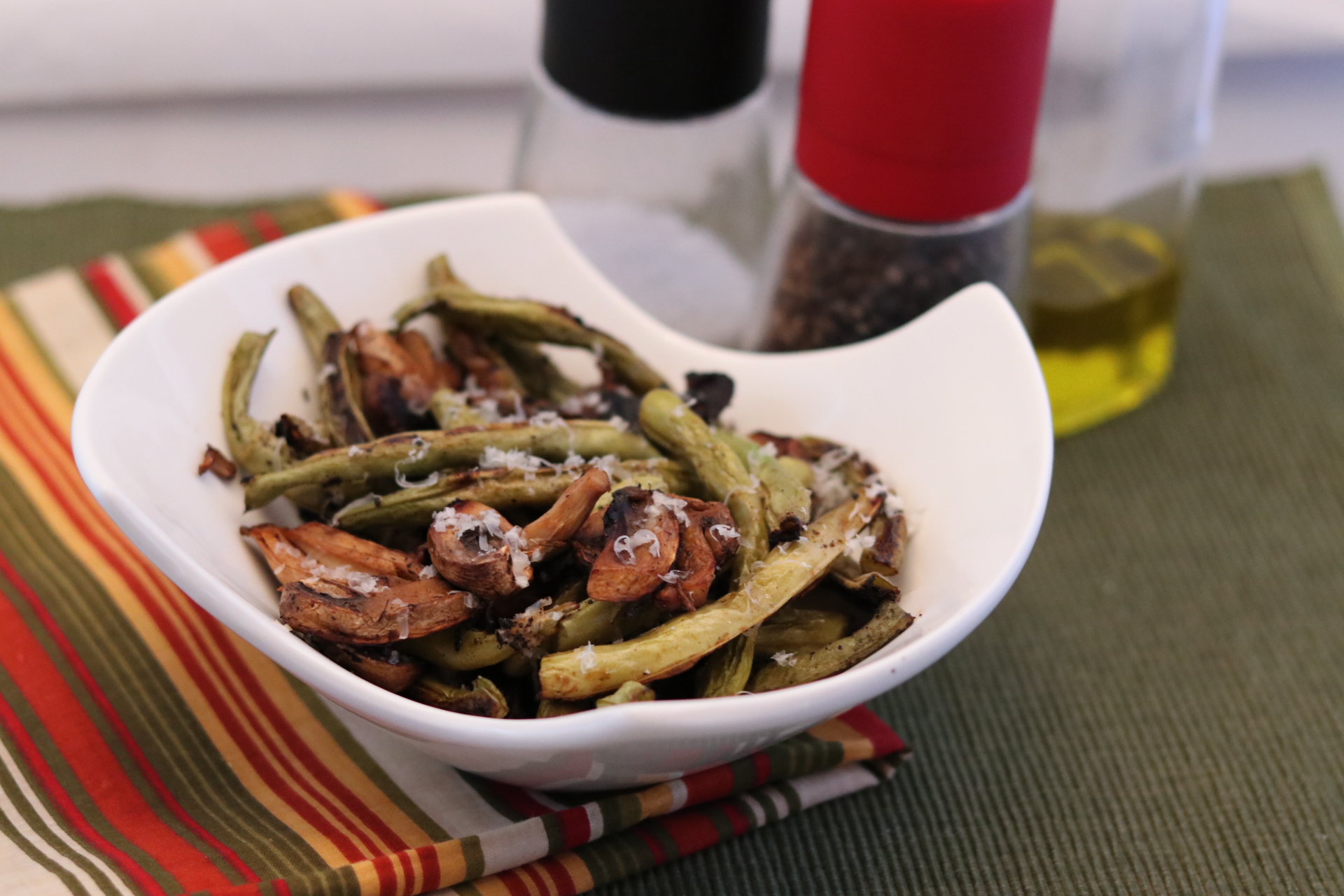 Roasted Balsamic Green Beans & Mushrooms – a simple and flavorful way to enjoy fresh green beans and mushrooms!