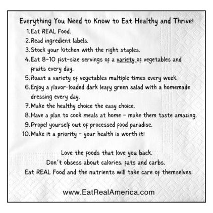 In our world of mass confusion about how to eat healthy, we have simplified everything you need to know. And it all fits on a napkin.